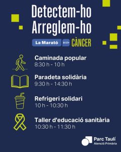 - 10:30 – 11:30 h: Taller d’educació sanitària: detecció precoç del càncer