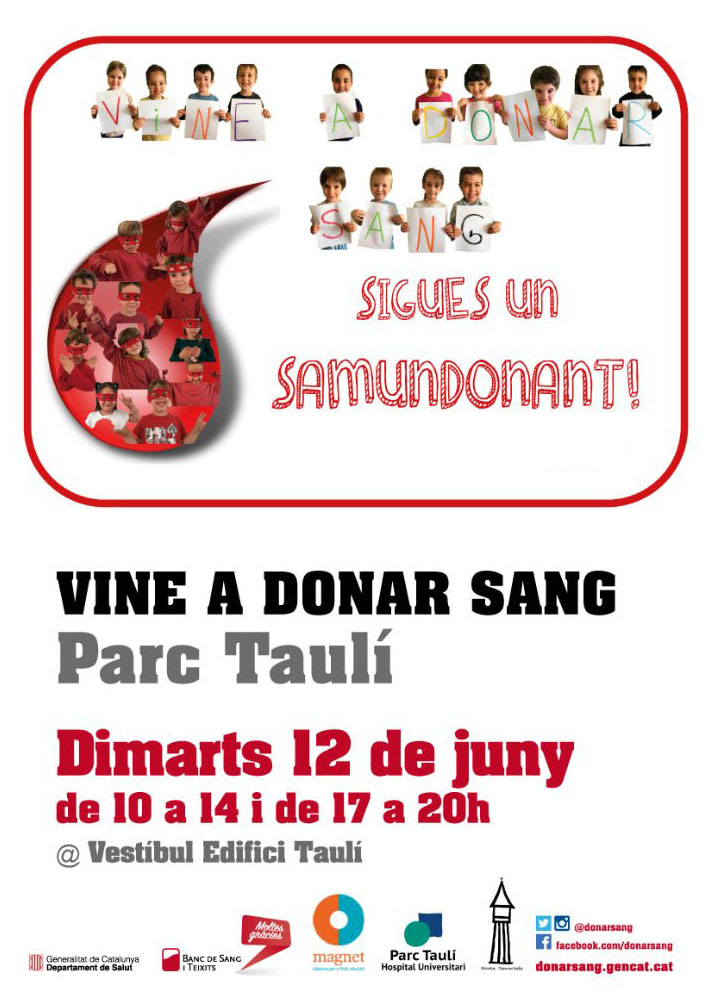 El dimarts, 12 de juny, vine a donar sang al Parc Taulí! Campanya molt especial amb el nens de l’escola Samuntada