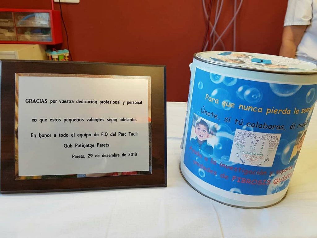 El passat 29 de desembre el Club de Patinatge de Parets del Vallès va organitzar un festiva solidari en benefici de la lluita contra la fibrosi quística (FQ). L’acte va ser promugut per la Susanya Araya, mare del Jerome, un pacient pediàtric afectat d’FQ. Ahir van fer lliurament de la quantitat recaptada als professionals de la Unitat de Fibrosi Quística. La Susana va posar de manifest l’agraïment a tots els professionals de la unitat: “Vull dir-vos que sou un gran equip de persones, perquè a banda de l’excel·lent professionalitat, la vostra humanitat i empatia ens fan sentir molt ben cuidats i tractats".