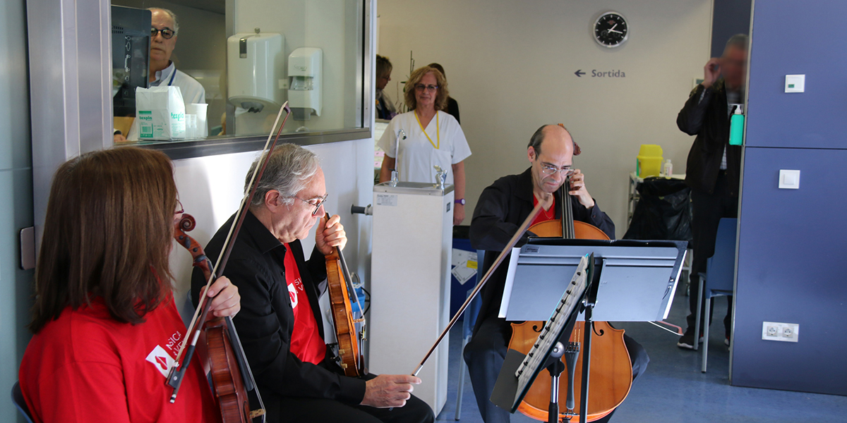 Coincidint amb la presentació, el trio de corda de l’OSV format per Nathalie Smirnoff (violí I), Xavier Riba (violí II) i Joan Esplugas (violoncel) va visitar primer l’Escola de la planta de Pediatria i, posteriorment, l’Hospital de Dia d’oncologia amb repertori de Vivaldi, Pachelbel, Corelli i Bach.