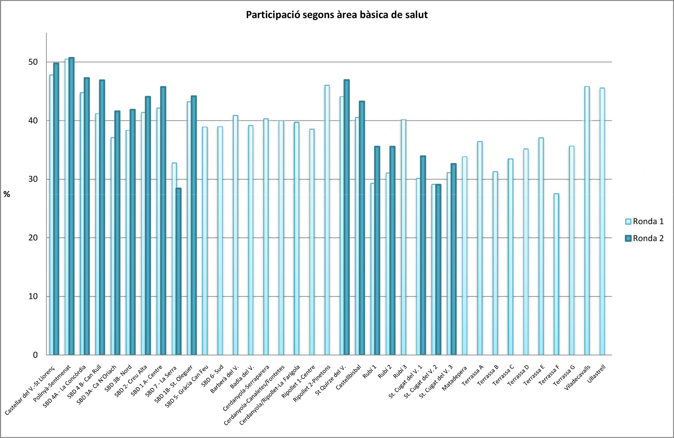 És de destacar que la participació és molt variable, en funció de l’àrea bàsica de salut, i segons es pot veure en el següent gràfic: