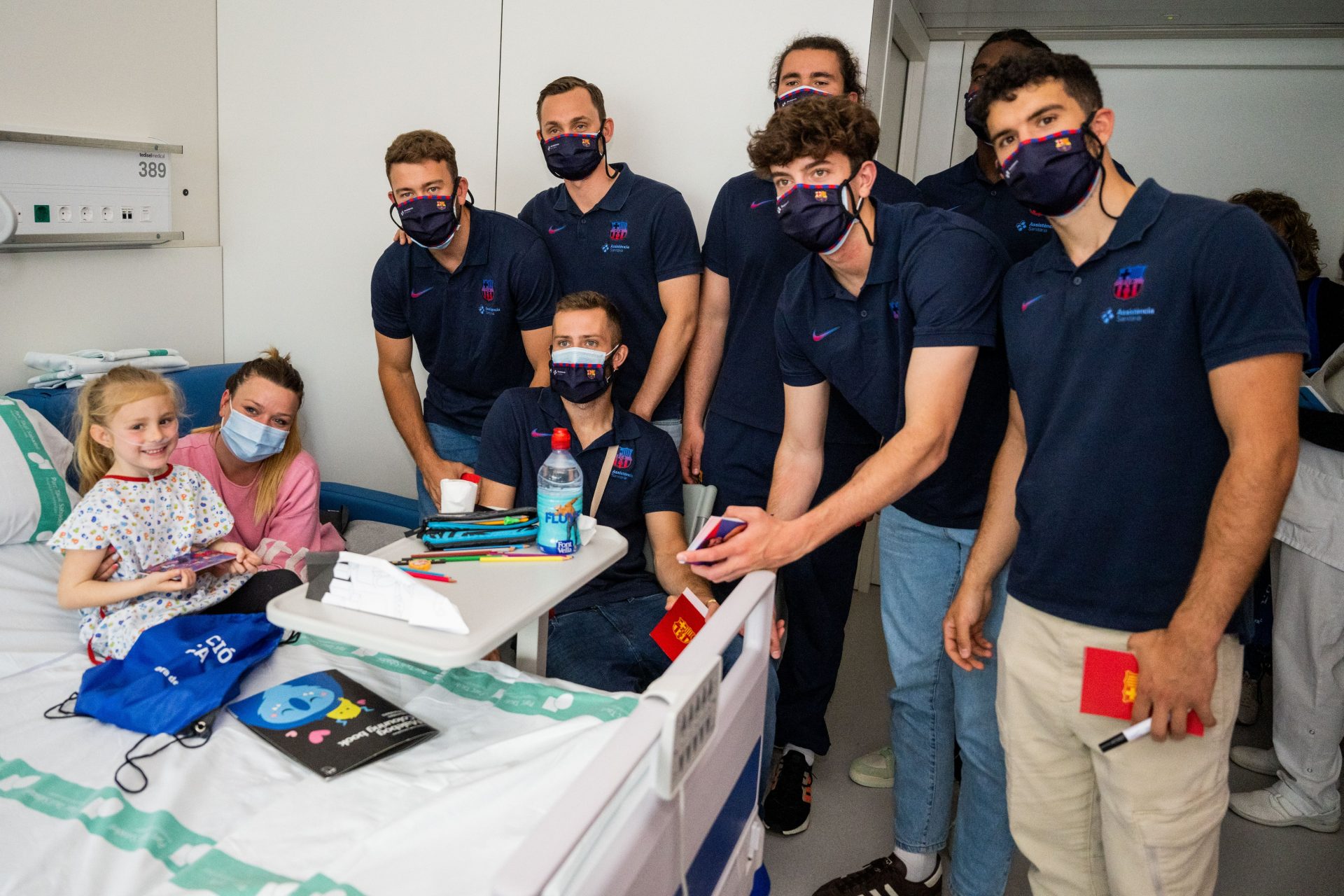 Els infants ingressats a la planta pediàtrica del Parc Taulí van rebre ahir la visita dels jugadors del primer equip d’handbol del Barça. Una iniciativa solidària de la Fundació FC Barcelona que suposa un moment de gran emoció i alegria per a aquests infants i les seves famílies que van poder fer-se ‘selfies’ amb els jugadors, van rebre diversos obsequis i autògrafs dels jugadors en un ambient de somriures, il·lusió i alegria, una teràpia excel·lent per a aquests nens i nenes en aquestes circumstàncies.