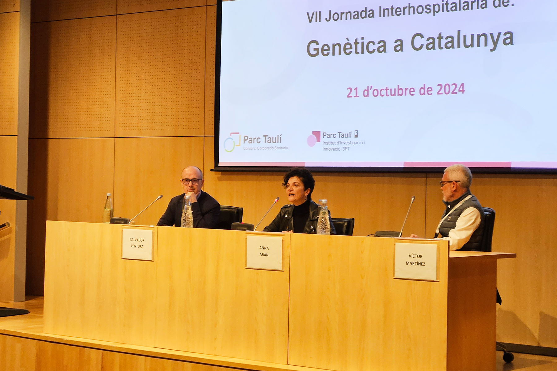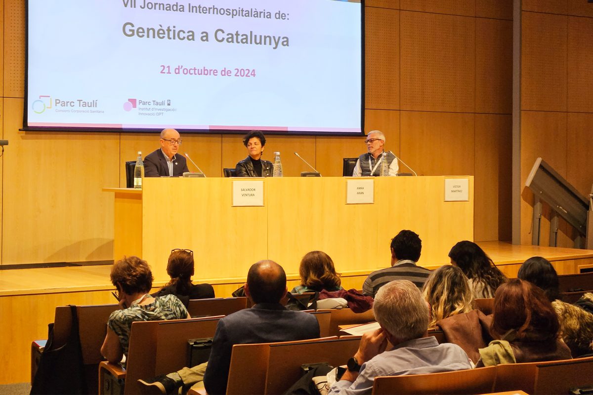 El Parc Taulí ha organitzat la VII Jornada Interhospitalària de Genètica de Catalunya. La directora general, Anna Aran, juntament amb el director de l’Institut d’Investigació i Innovació del Parc Taulí (I3PT), Salvador Ventura, i el director del centre de Medicina Genòmica, Víctor Martínez han fet la presentació de la Jornada a tots els professionals que hi ha assistit. També ha comptat amb la conferència inaugural de la gerent de Medicina Personalitzada i de Precisió del CatSalut, Gemma Valeta.