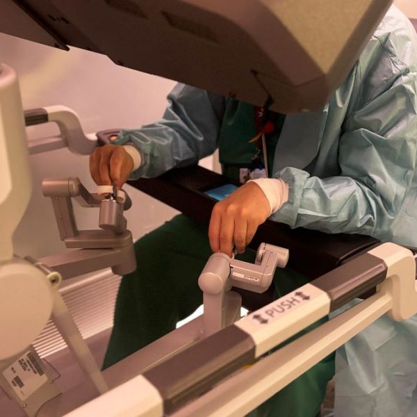 El robot Da Vinci és un sofisticat instrument quirúrgic que potencia les habilitats del cirurgià perquè ofereix una major visió, precisió dels moviments i control de la intervenció, eliminant la tremolor i els moviments involuntaris dels assistencials. El dispositiu està controlat per un cirurgià que opera assegut des d’una consola, des d’on té una visió tridimensional del camp quirúrgic i una millor accessibilitat a àrees anatòmiques de difícil accés.
