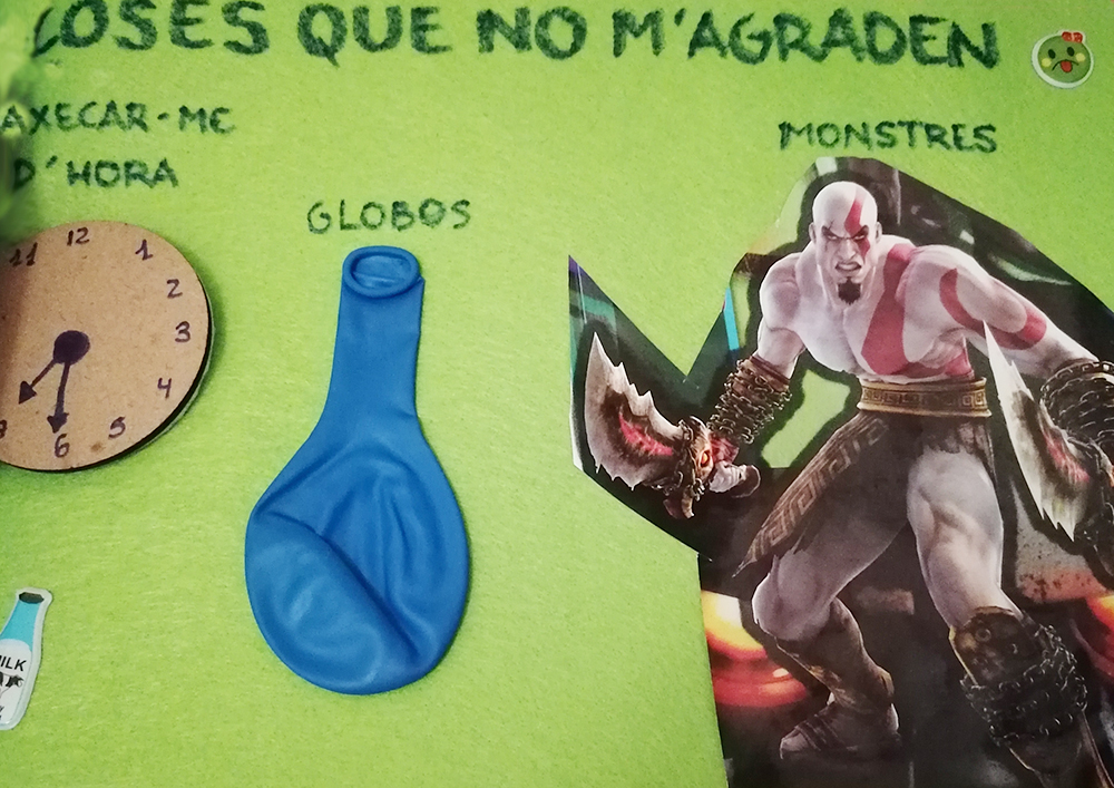 Durant els primers dies de curs, tots els infants de la classe van haver d'explicar coses sobre ells mateixos i dir-ne algunes coses que els hi agraden i d'altres que no els hi agraden. L'Auxi, mama de l'Àlvaro, va fer un llibret amb material tangible perquè el seu fill expliqués els seus gustos i fes la presentació.