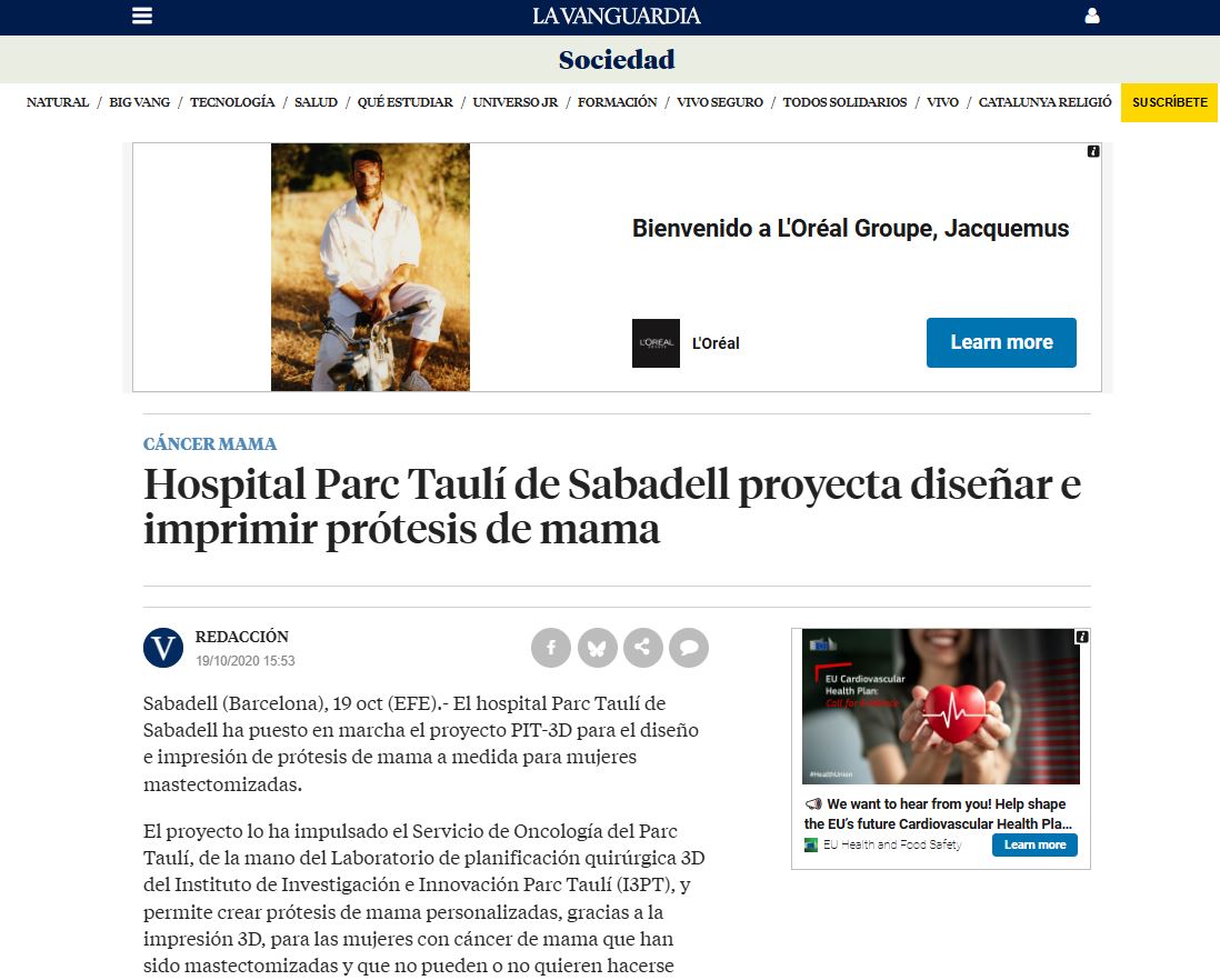 “Hospital Parc Taulí de Sabadell proyecta diseñar e imprimir prótesis de mama”