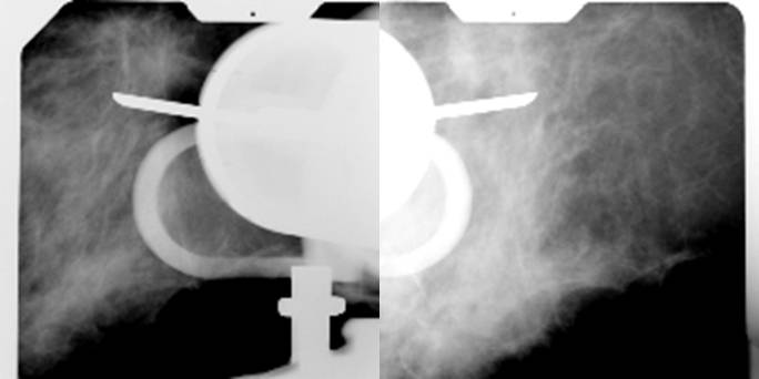 - Localitzar a les mamografies la zona d’extirpació. Mesurar les distancies del mugró a l’alçada de la lesió (perpendicular) i a continuació des d’aquest punt fins al centre de la lesió.