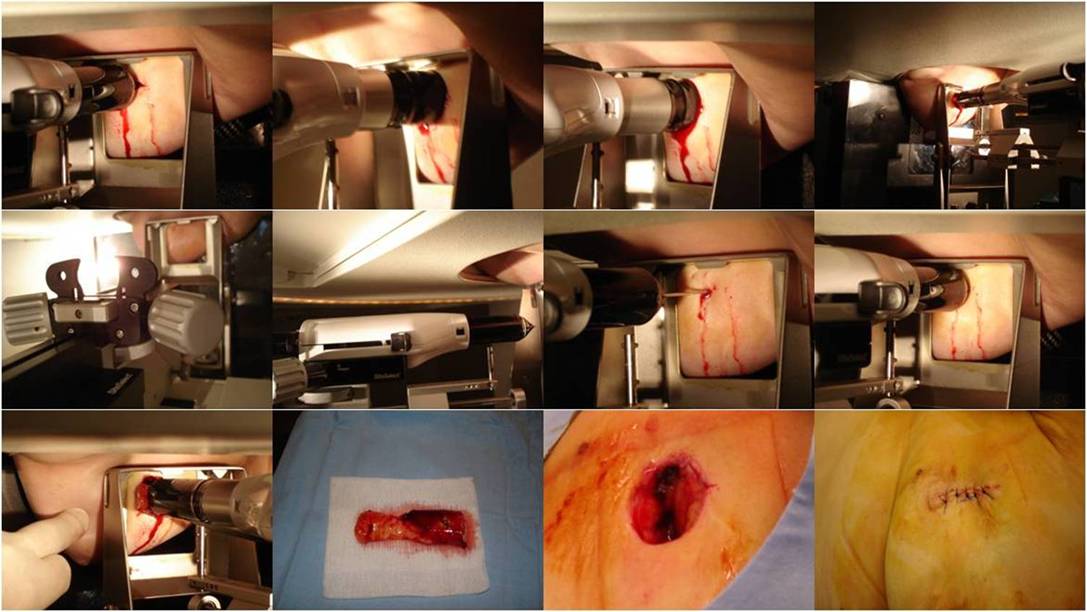 - Incisió de la pell amb fulla bisturà de 20 mm.