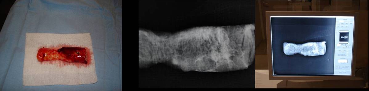 - Realitzem dues projeccions radiològiques crani - caudal i lateral 90 º. L’objectiu és comprovar que tant la lesió com els marges estan inclosos a la peça extreta.
