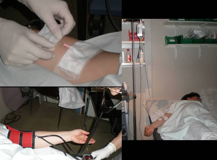 Canalitzar una via endovenosa perifèrica (20-G) col·loquem sèrum fisiològic 500cc de manteniment. Prendre constants vitals. Administrar sedant per via oral.