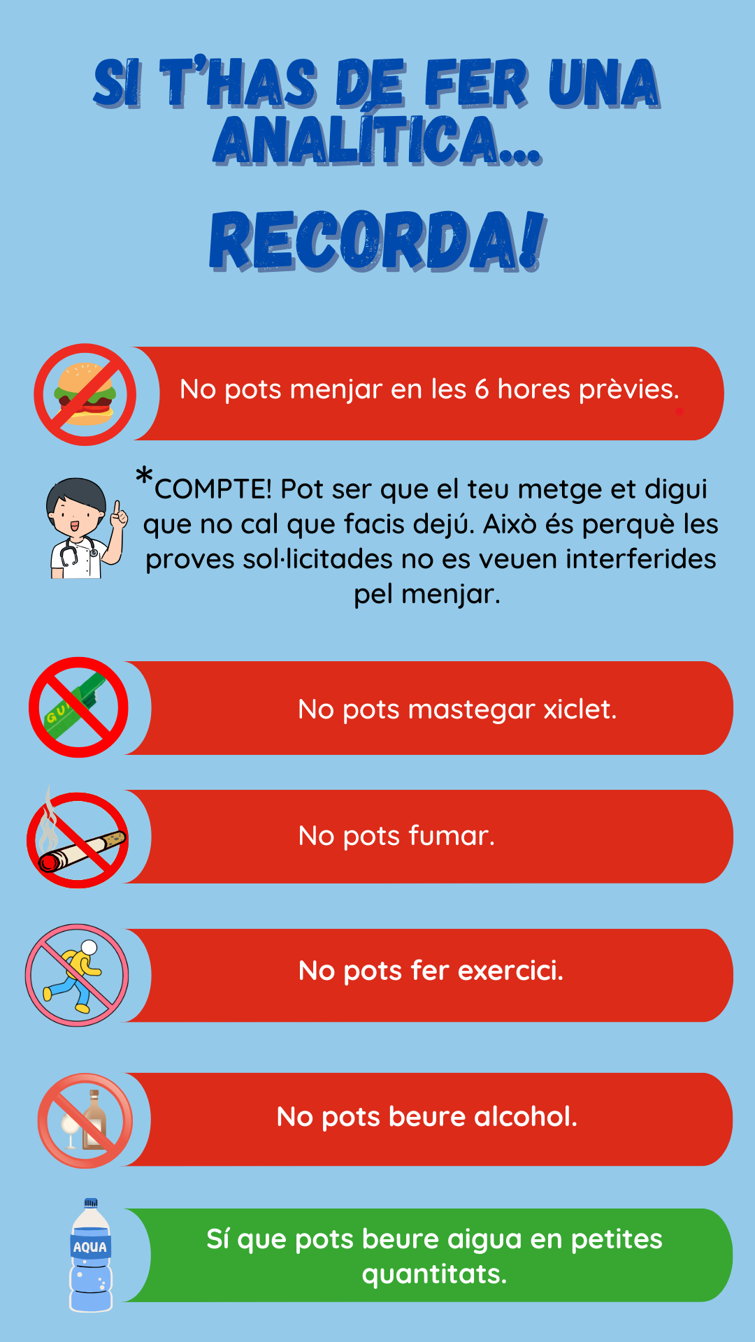 Per canvi d’horari d’analÃtiques cal contactar amb programació telefònica: